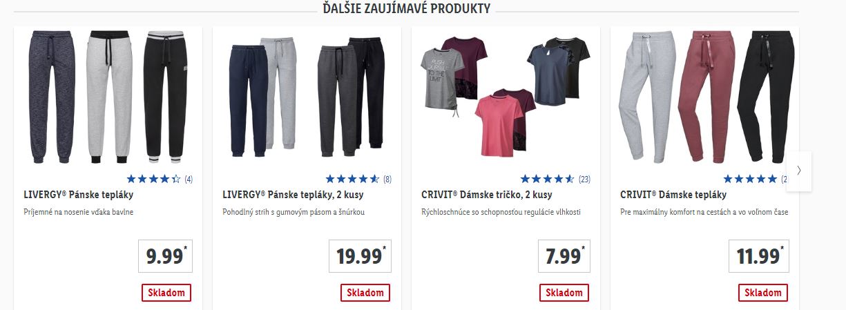 Následne v rámci kategórie Predpredaj nájdete opäť podkategórie Bývanie aj Pánska a dámska móda. Chaotické – nechaotické, pre častého návštevníka bude toto usporiadanie vhodným systémom kategórií. Nakoľko v časti Novinky nájdete presne to, čo na stránke Lidla, v časti Budúci týždeň. A keďže Lidl má v pláne rôzne akcie a aj týždňovky, táto sekcia bude pravdepodobne najnavštevovanejšou.
