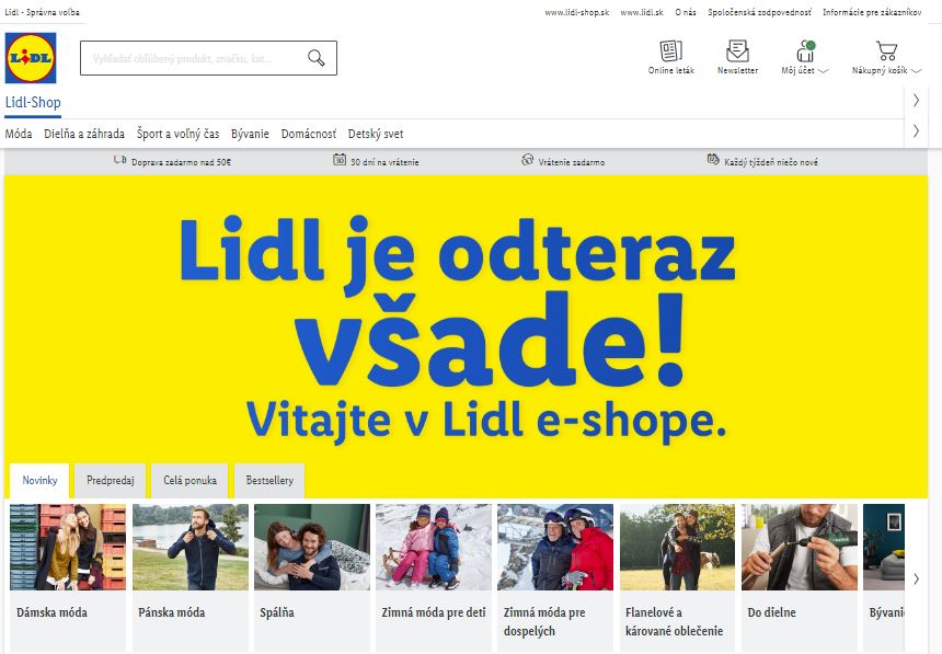 Od dnes spúšťa Lidl avizovaný Eshop. Zameraný je prevažne na spotrebný tovar, potraviny zatiaľ nie sú v ponuke. Dnes som si rovno vyskúšal objednať aby som zistil ako funguje. Tovar sa vracia zatiaľ iba cez poštu, nikde som nenašiel, či bude možné v budúcnosti vrátiť tovar aj na predajni. Ideálne by bolo, mať možnosť vrátiť tovar na predajni. Zákazníci by to mali jednoduchšie a Lidl by ušetril peniaze za logistiku, tak uvidíme.