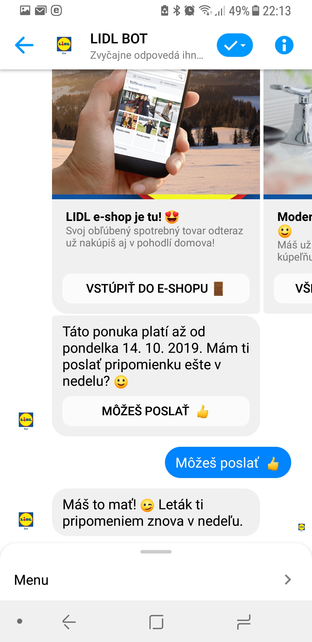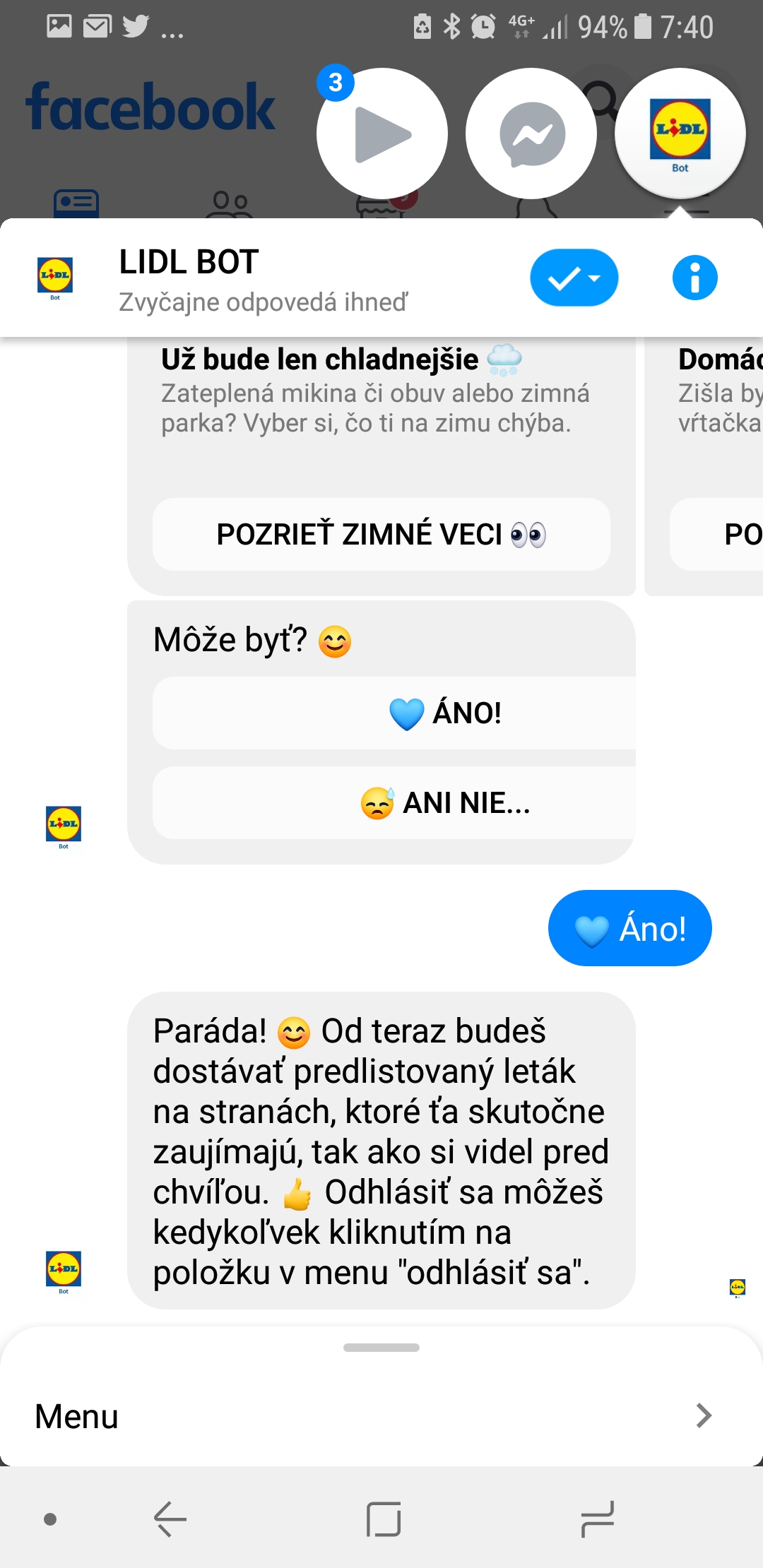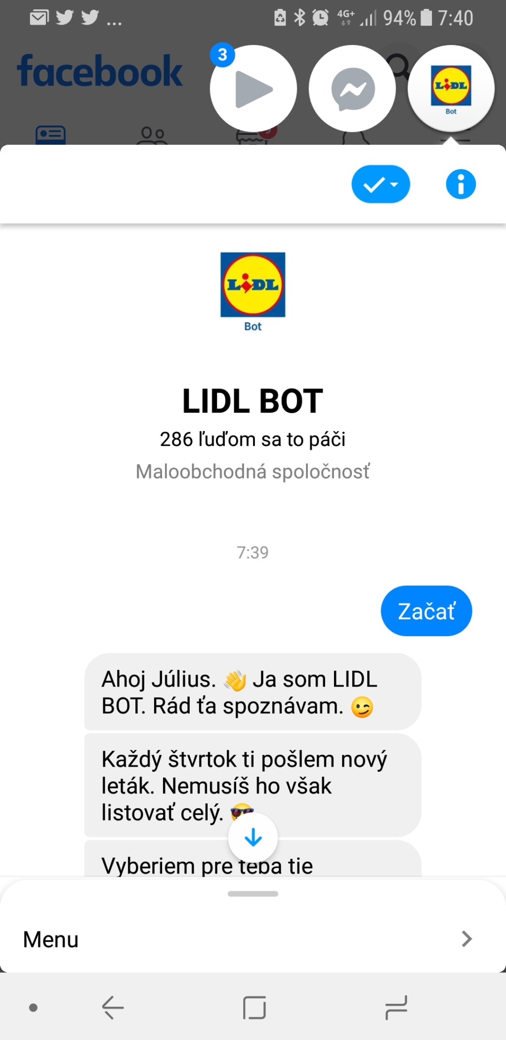 Lidl sa rozbehol v oblasti online a sociálnych medií, minulý týždeň spustili e-shop, a zároveň začal promovať aj chatbota na facebooku.