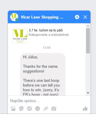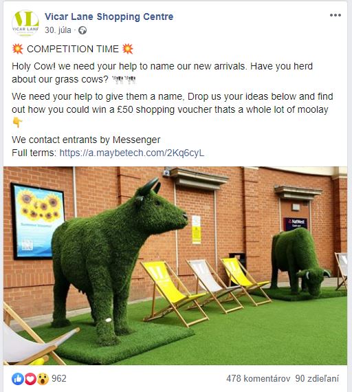 Celá súťaž je založená na dvoch krokoch. Na facebookovej stránke som v prvom kroku klikol na chatbota a zadal môj návrh mena jednej z kráv. Potom nasledovala preddefinovaná komunikácia. Celá pointa bola v tom, že po mojom návrhu mena, prišiel druhý krok. Inštrukcia, ktorá ma nútila ísť pred nákupné centrum a odfotiť sa s kravami z trávy.