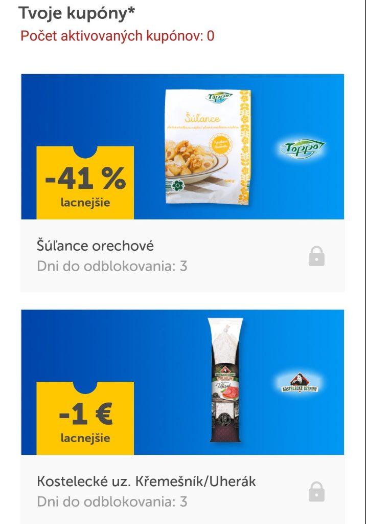 2. Zľavové kupóny. Tie by mali podľa predpokladu odzrkadľovať predošlé nákupné správanie. Pevne verím, že Lidl už bude vedieť zapracovať hyper-personalizáciu a nebude to len na úrovni Tesco kupónov, ktoré dostávam do schránky.
