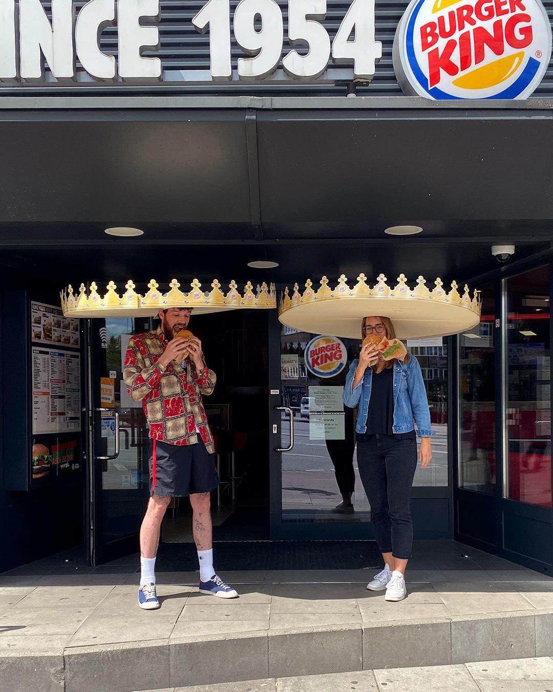 Dodržiavanie 2 metrovej vzdialenosti zobral vážne, využil na to neobvykle veľa materiálu, ale podarilo sa. Klasické porekadlo použi najskôr hlavu, tu nabralo nevídaný rozmer. Zo známej Burger King korunky, ktorú dostanete z času na čas v tejto sieti rýchleho občerstvenia, spravili prerastenú verziu metrového sombréra, ktoré nazvali “distančnou korunou”. Ak majú obaja rovnakú výšku, tak celý plán vychádza podľa predstáv, v opačnom prípade je to iba jednorázový dáždnik alebo chodiaci príručný stolík. Každopádne ak donútite zákazníkov, pod rúškom zábavy urobiť vám takto obrovskú reklamu, je to hodné rubriky Čdp.