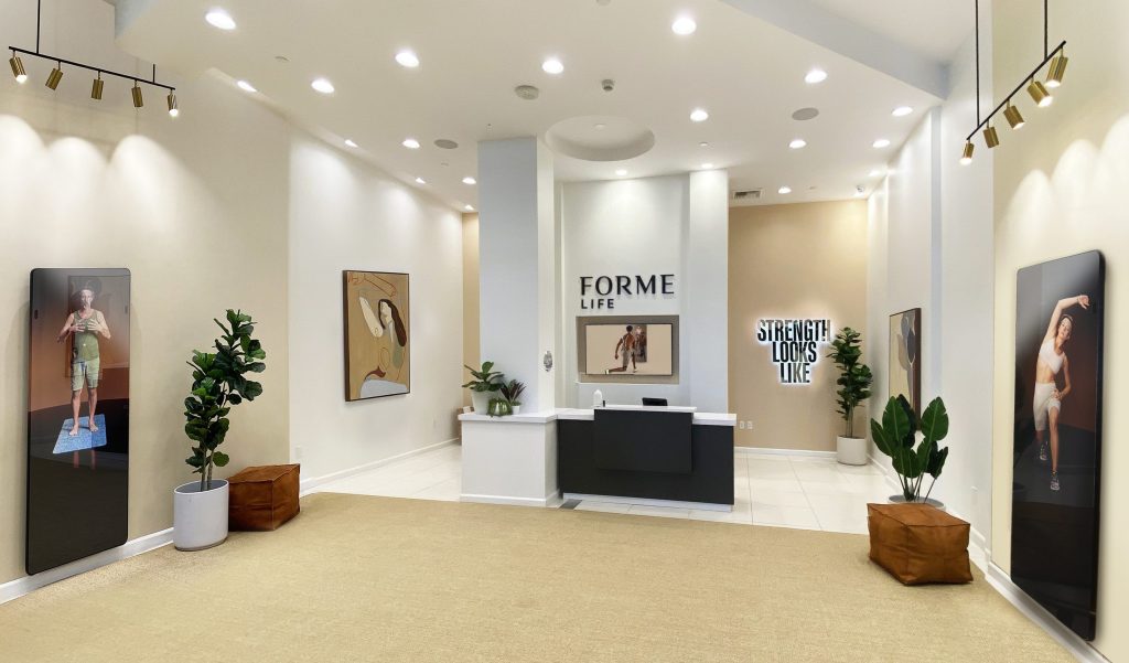 Forme Fit ako zástupca posilňovne bez prístrojov, ktorej som sa venoval v prvej časti, je jedným zo štyroch tech startupov, ktoré sa sústreďujú na digitálny fitness v podobe SMART zrkadiel. Zrkadlo vás spojí naživo s trénerom alebo prehrá videá na vyžiadanie. A môžete cvičiť. K dispozícii je množstvo príslušenstva ako činky schované vo vnútri alebo baletná tyč, ktorá sa montuje na zrkadlo. Najčastejším sú však expandéri, ktoré sú umiestnené po stranách a jednoducho ich schováte, keď sa nepoužívajú.
